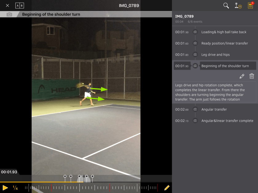 With the wider shoulder rotation then hip rotation in the preparation phase, the player can create the angular momentum as after the hip rotation stops, the shoulder can continue the following through and end up much more in front of the hip in the ending phase of the stroke.